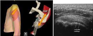 Teniendo en cuenta que el supraespinoso discurre en un plano a 30° con respecto al plano coronal del cuerpo, se debe colocar la sonda para una vista longitudinal del supraespinoso entre 30° y 60° con respecto al eje coronal del plano del cuerpo. Esto debería dar una buena vista del área de la huella de la tuberosidad mayor y la superficie articular superior de la cabeza humeral. Luego, la sonda se puede mover de anteromedial a posterolateral, es decir, desde el borde de ataque anterior del supraespinoso hacia el tendón del infraespinoso. El área más común para los desgarros del supraespinoso es en esta región.